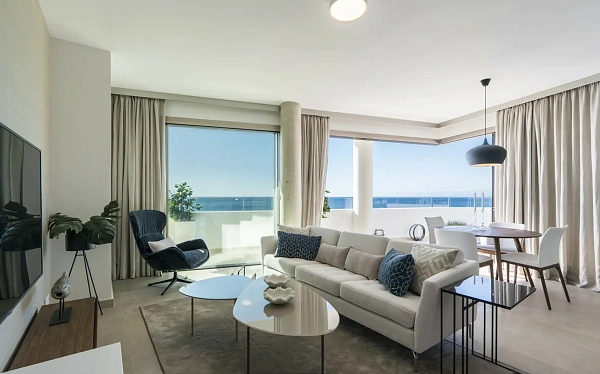 В новом комплексе элит-класса с невероятным видом на море продается светлая трехкомнатная квартира. Комплекс расположен на первой береговой линии в трех минутах от моря. Квартира спланирована в просторную кухню-гостиную с выходом на балкон, три изолированные спальни, два санузла и гардеробную комнату. С каждого окна открывается прямой вид на море.