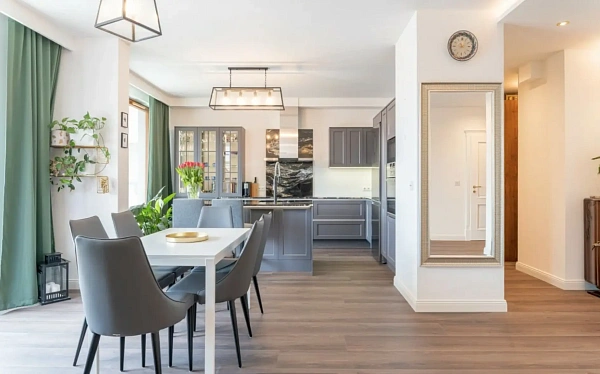 Квартира с новым дизайнерским ремонтом, в обустройстве квартиры использовались материалы ведущих производителей, также большинство мебели изготавливалось на заказ. Дорогая сантехника и кухонная техника. На ремонте не экономили, так как делали для себя, в связи с этим также не стали сдавать квартиру после отъезда - чтобы квартиру просто-напросто не убили.