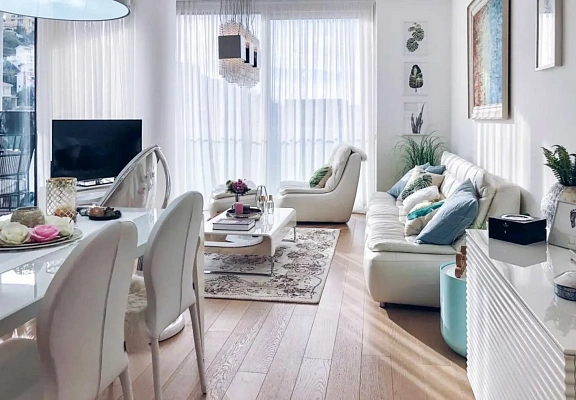 В новом комплексе бизнес-класса продается уютная трехкомнатная квартира. Квартира спланирована в светлую кухню-гостиную, спальню, детскую комнату и совмещенный санузел. В квартире выполнен качественный ремонт в светлых тонах, установлена дорогая бытовая техника и сантехника, в ремонте использовались материалы ведущих производителей.