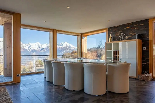 Благодаря большим витражным окнам из апартаментов открывается потрясающий вид на горы.