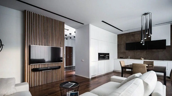 Интерьер квартиры выполнен в очень красивым и оригинальном стиле, сочетающем в себе минимализм и классику. Здесь нет ничего лишнего, но при этом квартира выглядит очень роскошно и вызывает неподдельный восторг у каждого, кто был тут хотя бы один раз.