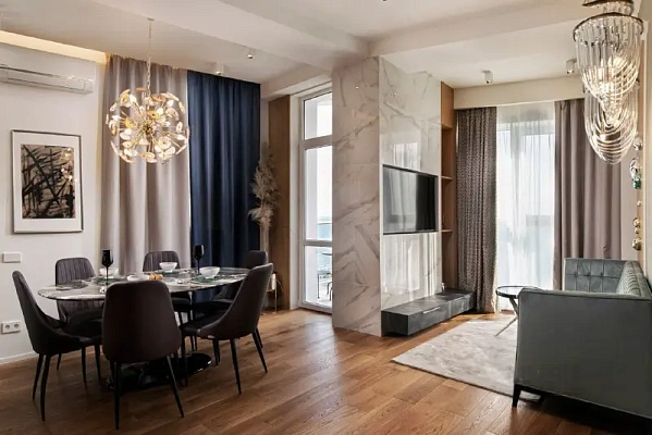 В квартире сделан новый ремонт, с балкона открывается панорамный вид на море. Планировка: изолированная спальня, большая кухня-гостиная, просторный санузел, гардеробная.