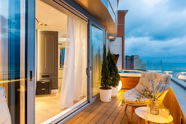 В квартире никто не жил, сделан новый ремонт из премиальных материалов. Планировка состоит: 3 выделенные спальни, большая кухня гостиная, кабинет, 3 сан узла, большая терраса с видом на море.
