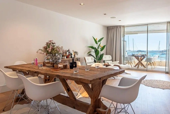 В пентхаусе сделан новый, дизайнерский ремонт. Приятные бежевые оттенки радуют глаз. Также большая терраса с шикарным видом на морскую пристань будет дополнительным преимуществом.