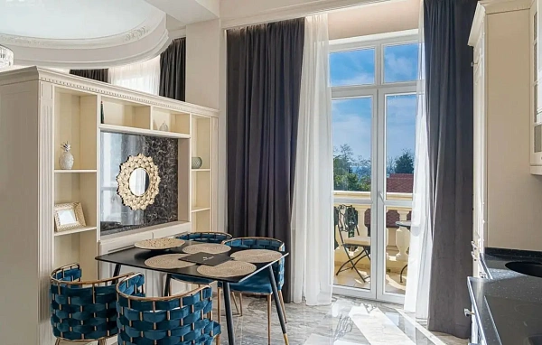 Апарт-отель «Матисс» Расположен в самом сердце города Сочи. Между Морским портом и Зимним театром. Апарт-отель «Матисс» является домом клубного типа. Закрытая приватная территория с ландшафтным дизайном и фонтаном. Всего 70 апартаментов. Это обеспечивает эксклюзивный статус и исключительное соседство. Само здание отличает уникальный для Сочи архитектурный стиль. Фасад здания выполнен в стиле Барокко.