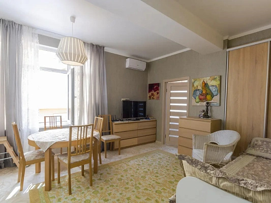 2 изолированные спальни, кухня-гостиная. Новый современный ремонт, добротная мебель. Дом бизнес класса.Консьерж, парковка. Полная сумма в договоре, любая ипотека. До моря 5 минут пешком. Остановка и магазины возле дома. Очень уютная, светлая квартира .Удобная для небольшой семьи.