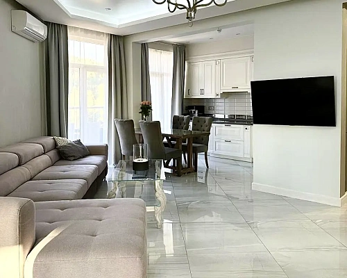 Квартира расположена в элитном жилом комплексе, который находится в центре Сочи и имеет благоустроенную территорию с газоном, круглосуточной охраной, видеонаблюдением и консьерж-сервисом.