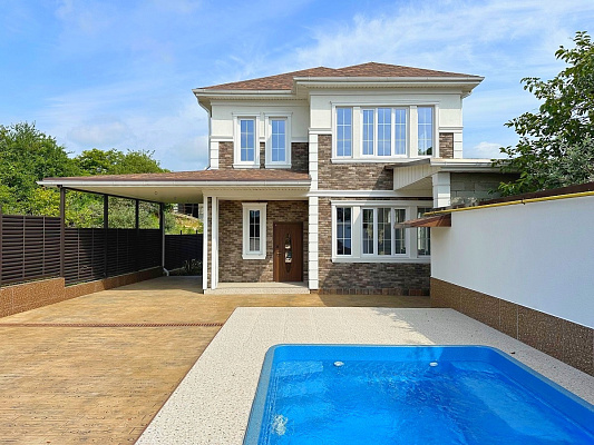 Земельный участок 4,5 сотки. Придомовая территория облагорожена, установлены раздвижные ворота, видеонаблюдение, домофон. Бассейн с подогревом.