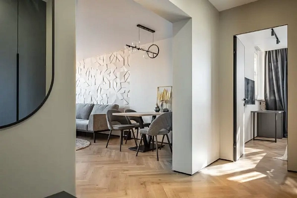 В квартире выполнен хороший ремонт из премиальных материалов.