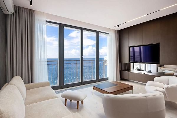 Утонченная квартира с новым, безупречным ремонтом и видом на море! Эксклюзивное предложение для ценителей эстетики, которая присутствует в каждом элементе дизайна квартиры. Из окон открывается не повторимый вид на Черное море. В квартире выполнен новый, стильный ремонт, установлена дорогая мебель и техника. Планировка следующего типа: кухня гостинная и спальня, совмещенный сан узел, большая гардеробная.
