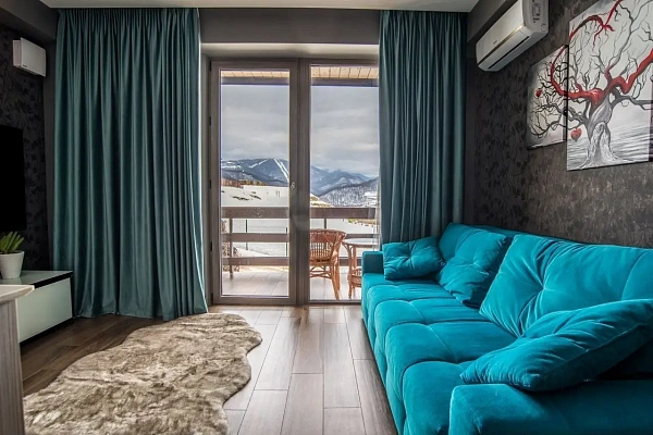 Выходя из апартамента Вы сразу попадаете в лучшую локацию Красной поляны. Рядом расположена вся нужная инфраструктура, такая как лучшие рестораны, кафе, торговый центр, аквапарк, Казино.