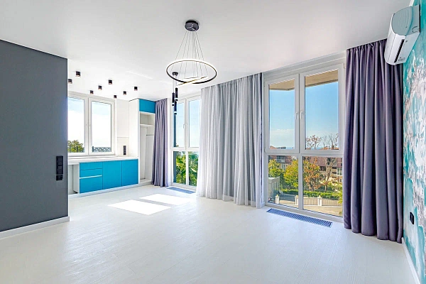 56м — выделенная спальня, кухня-гостиная. Вид на море . В квартире выполнен новый дизайнерский ремонт.