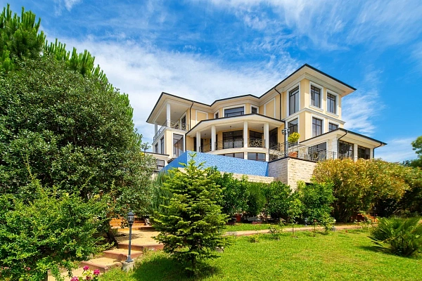 В продаже роскошный дом с потрясающим видом на Олимпийское наследие и морскую панораму. Удачное расположение, граничит с лесом, продуманное зонирование и планировка. В доме 5 изолированных спален, 5 санузлов, 2 кухни, просторный зал с камином и столовой, кальянная, русская баня и тренажёрный зал. Цокольное помещение для хозяйственных нужд, гараж на 4-6 авто, отдельные помещения для персонала. Дизайнерский ремонт в стиле современной классики с восточными и средиземноморскими мотивами, полный комплект мебели и техники. Дом готов к заселению сразу после покупки.