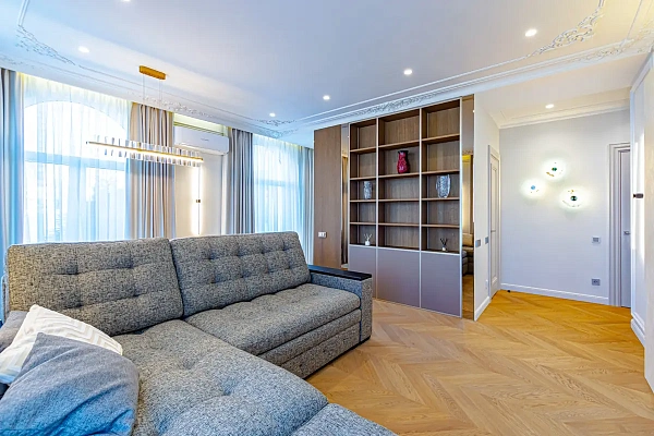 Красивая квартира в элитном доме у парка Дендрарий в 5 минутах от пляжа с видом на море . Самая лучшая планировочное решение в доме. В квартире выполнен авторский ремонт, установлена дорогая мебель: полы подогреваемые, покрытие паркет Coswick, гардеробная система фирмы Юнион, польская сантехника Omnires, итальянская плитка, освещение Maytoni, итальянская кухня Virs.