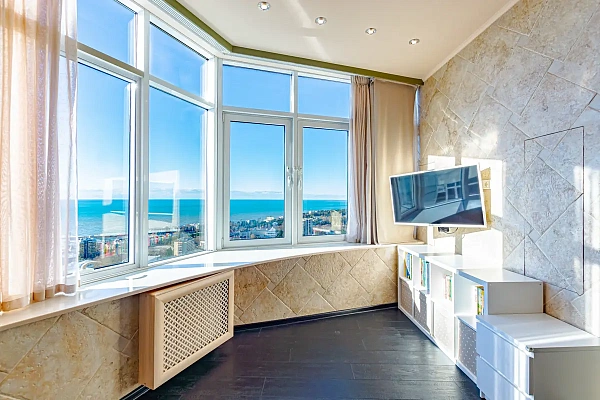 Продается уникальная квартира с видом на Морской порт в самом Центре города на знаменитой улице Первомайская. Рядом с домом расположена основная и знаковая инфраструктура Сочи. Морской Вокзал, улица Навагинская, Администрация города и площадь флага, Концертный Зал Фестивальный. Пляж и море в шаговой доступности, парк Ривьера в одной автобусной остановке.