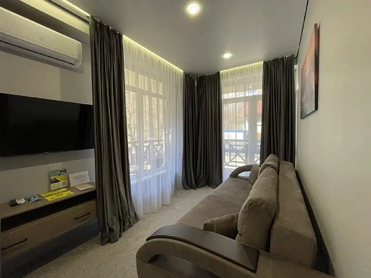 Закрытый апартаментный комплекс в самом центре Красной поляны. В комплексе есть все для отдыха и проведения досуга: баня, лобби бар со шведской линией, открытый подогреваемый бассейн, спортивный зал. кабинеты массажа. Гости могут пользоваться этим всем без отдельной оплаты.