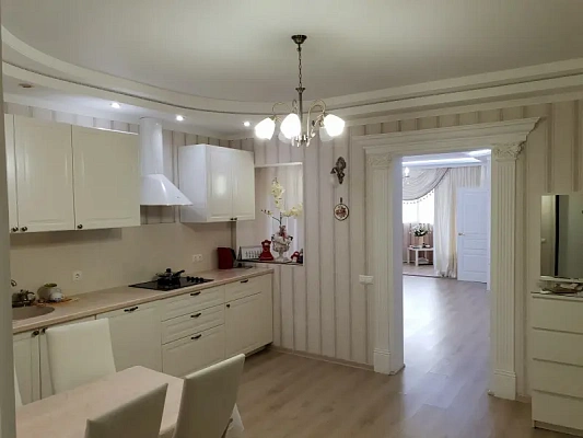 Трехкомнатная квартира с хорошим дизайнерским ремонтом. Выполнен в светлых тонах, с дорогой бытовой техникой, и сантехникой.