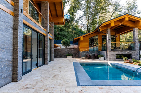 Современный дом из Эко материалов, до моря 10 минут на машине, до центра города 15 минут. Дом 200 кв.м, выполнен дизайнерский ремонт . 1 этаж: кухня-гостиная, ванная комната, спальня . 2 этаж: ванная комната, две спальни, спальня со своей ванной комнатой. В коттедже: окна ALUMIL, ALUTECH. Все выполнены в одном архитектурном стиле, применены отделочные материалы натурального камня: мрамор, травертин, доломит. Так же для фасада был использован планкен из лиственницы. Мягкая кровля Каер. Бассейны с подогревом, подсветкой.