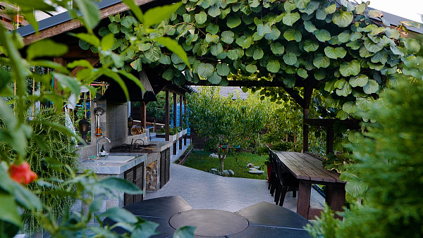 Полное благоустройство участка – брусчатка, газоны, сад с плодовыми