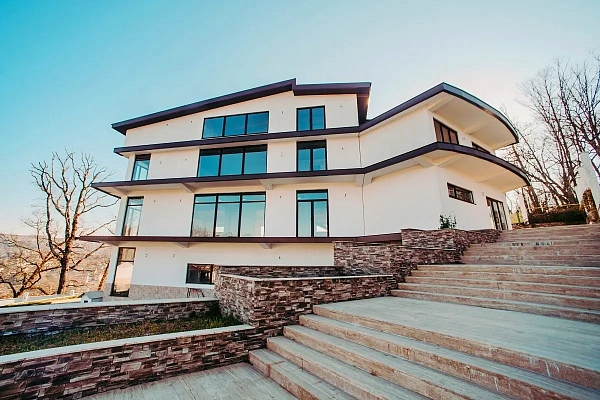 Эксклюзивное предложение о продаже домовладения площадью около 1000 кв.м., в черте города Сочи! Дом монолитно-блочный, построен с соблюдением всех строительных норм. Выполнена качественная внешняя отделка. Планировка: полуцоколь с выходом к банному комплексу, техническая комната, прачечная, первый этаж: кухня гостиная, гардеробная, санузел, терраса. второй этаж: две спальни + детская, есть тайная комната, санузел в каждой спальне, терраса, мансардный этаж: 6 комнат: кинотеатр, кабинет, лаунж зона, санузел, большая терраса. Из окон открывается красивый вид на город, горы и море.