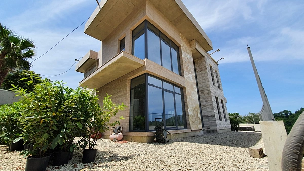 Дом выполнен по современным технологиям: оконный профиль "Алютекс", стекло Бельгийское 6мм. Внешняя отделка фасада натуральным камнем- ТРАВОНИКС, ТРАВЕРТИН, и полудрагоценный ОНИКС.