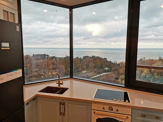 В продаже квартира в центральном районе Сочи, в доме бизнес-класса в микрорайоне Новый Сочи. В квартире сделан дизайнерский ремонт, частично есть мебель (вся новая), европейская сантехника и немецкая бытовая техника. Из окон открывается шикарный вид на море и город. Квартира очень светлая, стильная и уютная. Для настоящих ценителей комфорта и красивой жизни. На крыше дома есть бассейн и зона отдыха.