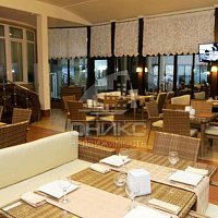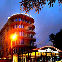 В просторном ресторане отеля, оформленном в красных и белых тонах, подаются блюда классической русской и кавказской кухни. С террасы для загара открывается вид на Адлер.