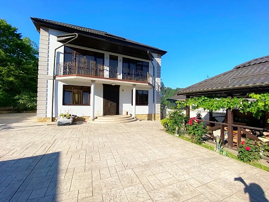 Площадь коттеджа составляет чуть более 300 кв.м. Выполнена полная внутренняя отделка. Рациональная планировка: в доме 4 спальни, кухонная зона с выходом на террасу, просторный зал, кабинет, 2 санузла, 2 ванные комнаты, гардеробная, подвальное помещение, котельная, мансарда свободной планировки (идеально подходит для организации бильярдной, кинотеатра, зоны отдыха и т.д.) и балконы с красивым видом на горы и лес.