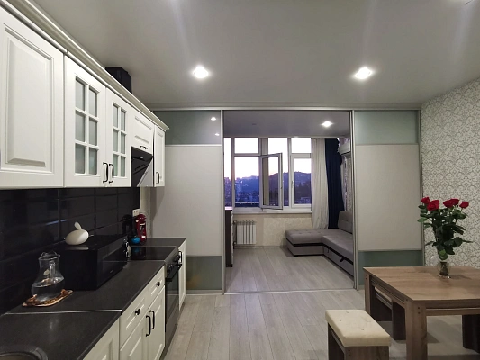 Квартира находится в доме комфорт-класса, в центральном районе города Сочи, микрорайон Макаренко. Развитая инфраструктура. В пешей доступности 3 детских садика,3 гимназии (15,6,44), множество магазинов, в том числе сетевых Магнит, Пятерочка, Красное и Белое, салоны сотовой связи, банки, продуктовый рынок, автобусные остановки.