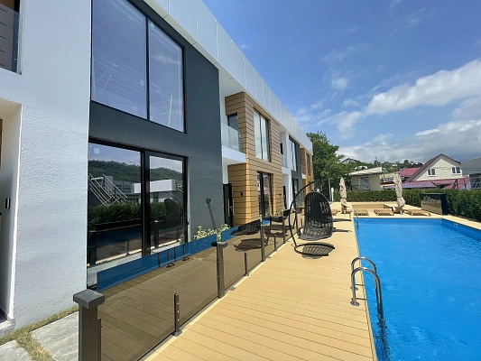 В продаже таунхаус бизнес класса. Стиль современный хай-тек. Закрытая территория под видео наблюдением. Располагается между горным кластером Красная Поляна и прибрежной зоной Олимпийского парка. Вблизи национального парка и русла реки Мзымта. Одно из преимуществ комплекса, это ровная территория, быстрый удобный подъезд с федеральной дороги и удобная транспортная развязка, обеспечивающая доступность к туристическим объектам города и ко всем объектам инфраструктуры. На территории располагается бассейн, сауна и зона барбекю.