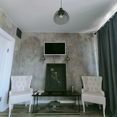 Интерьер выполнен в стиле Арт Деко и отвечает всем современным тенденциям. Функциональная мебель и техника.