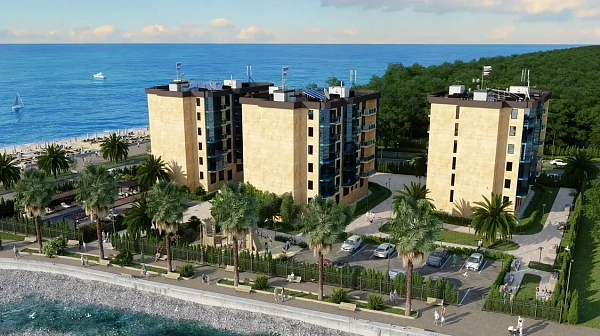 Апартаментный комплекс Морской берег в Лазаревском. Уникальность жилого комплекса премиального уровня не имеющим аналогов - всего 35 метров до моря и отсутствие железной дороги, экологичный проект: использованы природные материалы в отделке, территория 0.5 Га с ландшафтным дизайном и озеленением. В состав комплекса входит 3 шестиэтажных корпуса по 48 апартаментов в корпусе. Прекрасные виды из окон каждого апартамента: на горы или лазурное море.