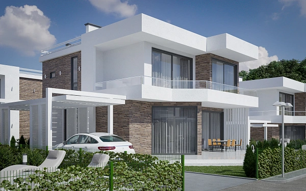 Архитектура домов выполнена в стиле Hi-Tech. Площадь каждого дома-200 м2 на 4,5 сотки земли.