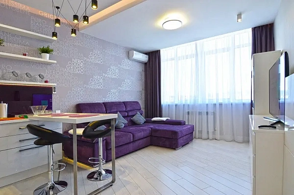Площадь квартиры 56 м2, выполнен качественный ремонт. В квартире установлено панорамное остекление, которое создает дополнительный свет и уют, а также позволяет любоваться великолепным видом на город и море.