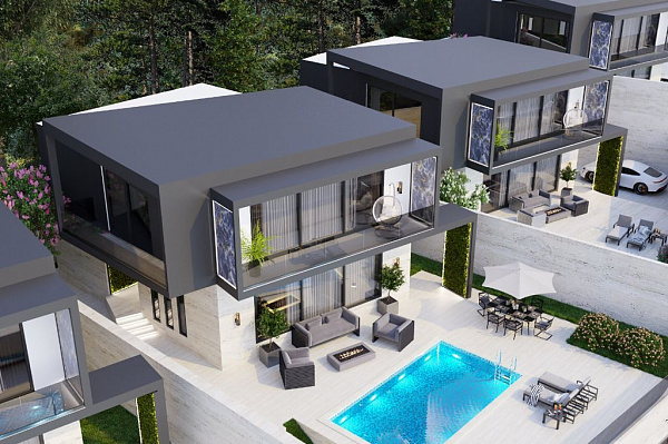 В строительстве дома были использованы самые современные материалы. Фасад-базальт и травертин, с элементами оникса.