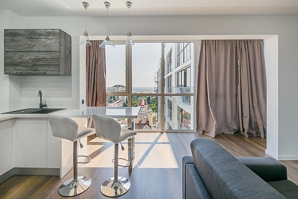 Квартира 60м, распланирована в изолированную спальню, просторную кухню-гостиную, грамотно зонированную в отдельную зону гостиной и кухни. Выполнен новый дизайнерский ремонт. Высокие потолки, панорамное остекление, вид на море и город!