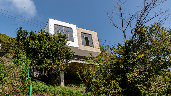 Свободная планировка, первый этаж: спальня, кухня-гостиная, с панорамным видом на город, горы, и море, гостевой сан.узел.