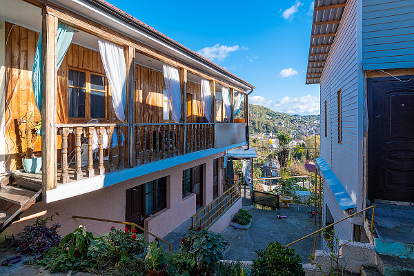 Это легендарный дом со своей историей, именно здесь в 1981 году снимался фильм "Будьте моим мужем" с Еленой Прокловой и Андреем Мироновым. Дом расположен на возвышенности с потрясающим видом на море и курортный поселок Лоо. До моря 5-7 минут. Рядом находятся продуктовые магазины, рынок, столовая, кафе, остановка. На территории гостевого дома Вас ждет действительно райский отдых, Вы забудете о городской суете и погрузитесь в гармонию и уют под пение птиц в окружении пальм и других экзотических, тропических растений.