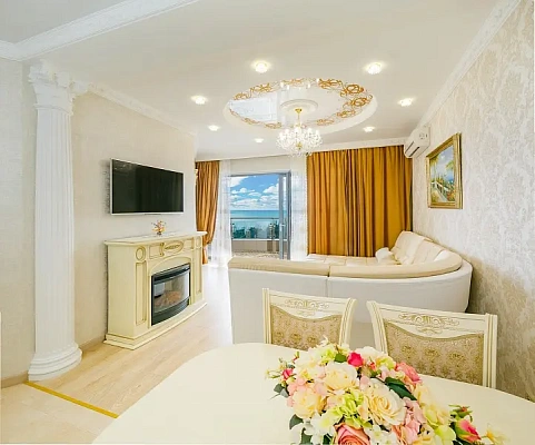 Квартира в ЖК Элитного класса. Площадь 70 кв. метров (спальня, кухня гостиная, гардеробная). Высокие потолки. Ремонт качественный. Мебель и техника остается. На балконе разместили место для обеда. Панорамный вид на море!