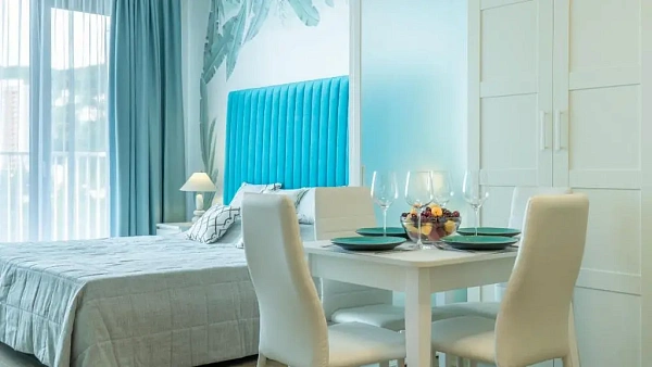 О Комплексе: Закрытая территория, открытый бассейн, детская площадка, площадка для воркаута, два ресторана, кофейня, минимаркет, СПА, салон красоты, выход на набережную терренкур. Территория находится под круглосуточной охраной.