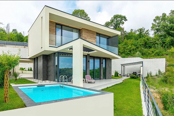 Собственный бассейн с подогревом, зона барбекю, ландшафтное озеленение,
