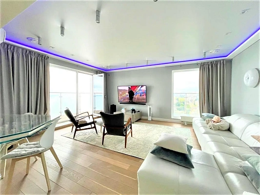 120м2 удобно распланированы в кухню - гостиную, 2 выделенные спальные, 2 с/у, 2 терассы. Дорогой красивый ремонт, сантехника villeroy & bosh. Техника на кухне Siemens. Всё встроенное. Тёплый пол.