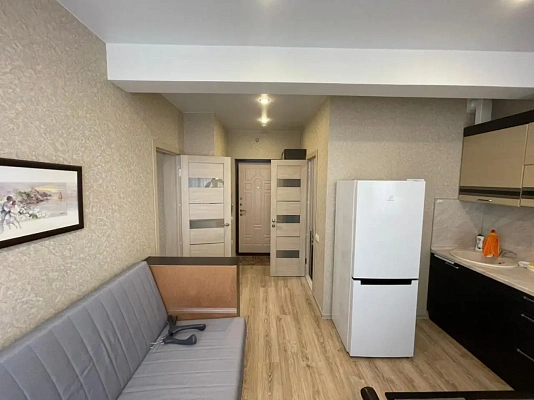 Площадь квартиры 30м2, распланирована в спальню и кухню-гостиную. Квартира полностью готова к проживанию, есть все необходимое.