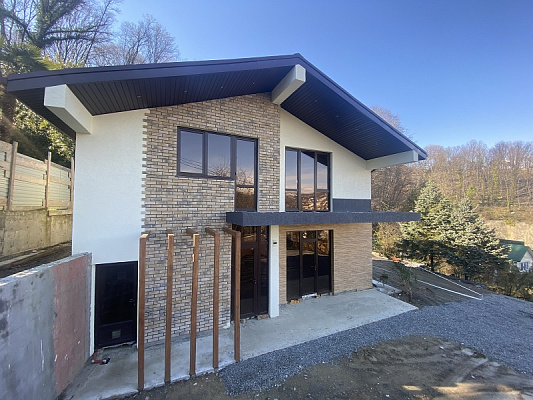 Новый монолитно-блочный дом площадью 160 кв.м., двухэтажный. Внутри свободная планировка. Земельный участок 3,5 сотки, ровный, граничит с нац. парком. Хороший подъезд к дому. Дом и участок в собственности.