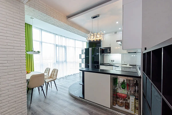 Изначально квартира строилась для себя, для комфортной жизни в ней, поэтому в ней предусмотрено всё от стабилизатора напряжения (защита техники от перепадов напряжения) до 100-литрового водонагревателя на случай отключения горячей воды, встроенный в стену водонепроницаемый телевизор AVIS в ванной комнате с USB-выходом. Кухня Mr.Doors, встроенный фильтр для очищения водопроводной воды до питьевой. Снаружи над входной дверью квартиры установлена камера видеонаблюдения (возможность просмотра в режиме реального времени и записи архива). Вся техника дорогая, отличается высоким качеством и презентабельным внешним видом (широкоформатные телевизоры Samsung, кухонная техника Zigmund & Shtain, в том числе вместительная посудомоечная машина, стиральная машина Sumsung с загрузкой 9 кг). Полы - красивый «неубиваемый» кварцвинил, не горит и не впитывает воду, а под ним мощнейшая гидроизоляция заложенная на стадии черновых работ (вы никогда не затопите соседей!). По всей квартире в бетонной стяжке разведены качественные тёплые водяные полы. Окна от застройщика заменены на прочнейший немецкий профиль с тонированными мультифункциональными стёклами (не пропускают жару и отлично держат микроклимат в помещении). При ремонте продумано всё до мелочей, строгий контроль качества при исполнении!