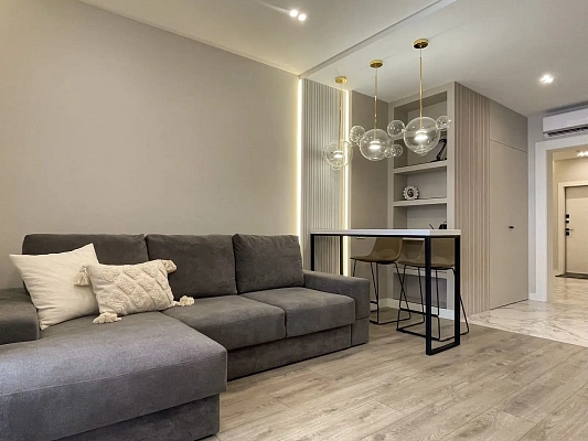 В квартире выполнен дорогой ремонт из премиальных материалов, установлена качественная техника, мебель, премиальное освещение ЦЕНТРСВЕТ, межкомнатные двери Sofia.
