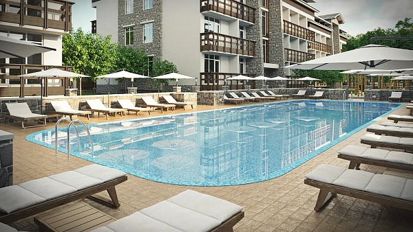 Апартаменты продаются в черновой отделке, уютный балкон с видом на бассейн, дизайн проект в приятным бонусом в подарок.
