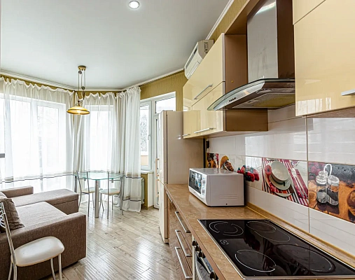 Вокруг дома находится закрытая территория с парковкой, а также спортивной и детской площадкой. Рядом есть магазины, торговые центры, детские учреждения, остановки, кафе, прогулочная речная набережная, парк культуры и отдыха, а также благоустроенный пляж с мелкой морской галькой.