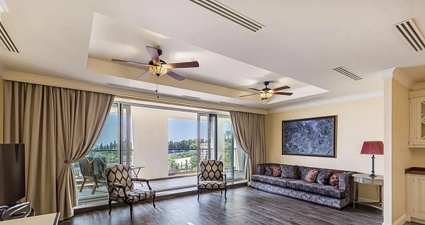 Элитный комплекс у которого самая большая своя собственная территория в 7Га, на которой растут и цветут тропические растения, уникальные деревья и пальмы. Территория по периметру огорожена и находится под наблюдением и постоянной охраной со всех сторон. Так же на территории несколько бассейнов, сауна, хамам, рестораны, кафе, собственный пляж с бесплатными, красивыми, как за границей, лежаками, зонтиками и открытым пляжным кафе.