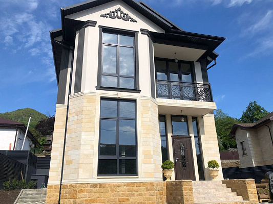 Площадь коттеджа 241 м2, Европейский стиль, собственная огороженная территория с парковкой на 2 автомобиля.